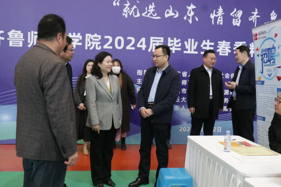 yl6809永利检测中心团总支书记邹少爽,辅导员李玉涛、杨茜带领2024届毕业生来到招聘会现场参加活动,与部分用人单位代表交流了解人才需求和学生投递简历情况,听取用人单位对yl6809永利检测中心人才培养的建议,询问毕业生求职准备及就业意向,有针对性地向毕业生传授求职技巧,鼓励美院学子把握机遇,积极投身于建设社会主义现代化强国的伟大事业中。