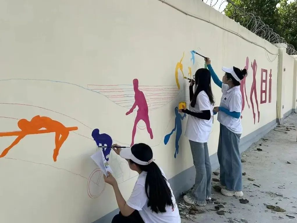 yl6809永利检测中心“传红色声音,树时代榜样”服务队在好生初级中学进行墙绘活动