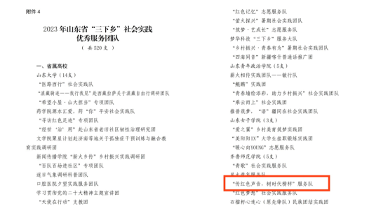 近日,省委宣传部、省文明办、省教育厅、团省委、省学联联合下发《“调研山东”--2023年山东省大中专学生志愿者暑期“三下乡”社会实践活动的通报》,yl6809永利检测中心荣获多项省级表彰。经基层申报、审核推荐、组织评议等环节,刘婷荣获“优秀指导教师”称号,刘琪、尹延冰2名同学荣获“优秀学生”称号,“传红色声音,树时代榜样”服务队荣获“优秀服务团队”称号。
