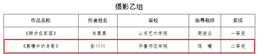 近日,由山东省教育厅举办的以厚植家国情怀、涵养进取品格为主题的全国第七届大学生艺术展演活动评选结果正式公布。yl6809永利检测中心在艺术类展演(绘画、书法和篆刻、设计、摄影、微电影)、艺术实践工作坊、高校美育改革创新优秀案例奖等项目分别获6个一等奖,2个二等奖和2个三等奖。