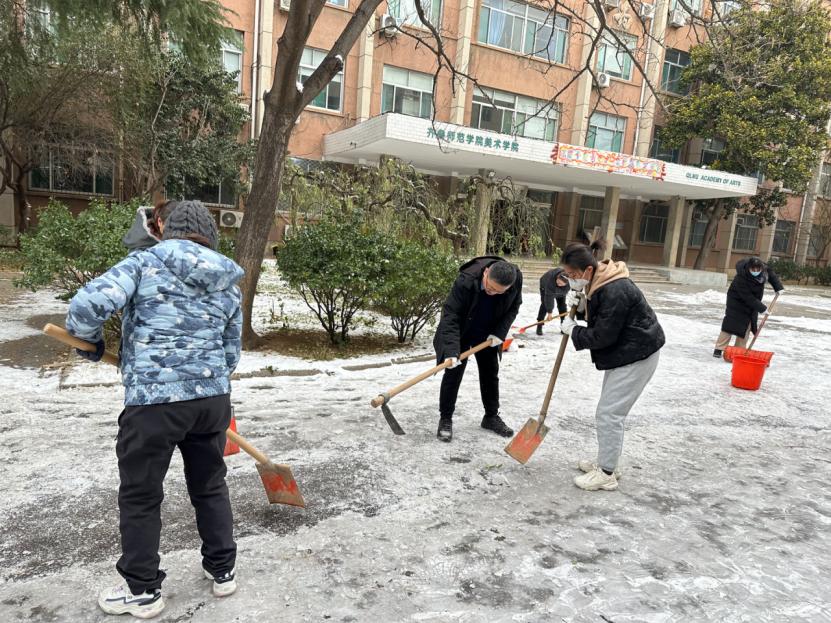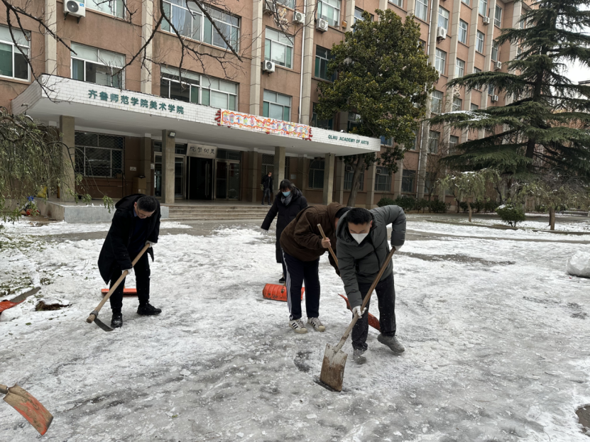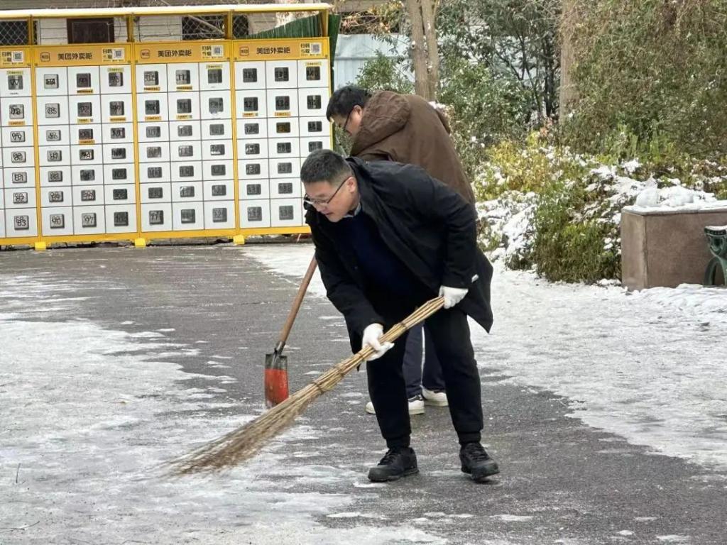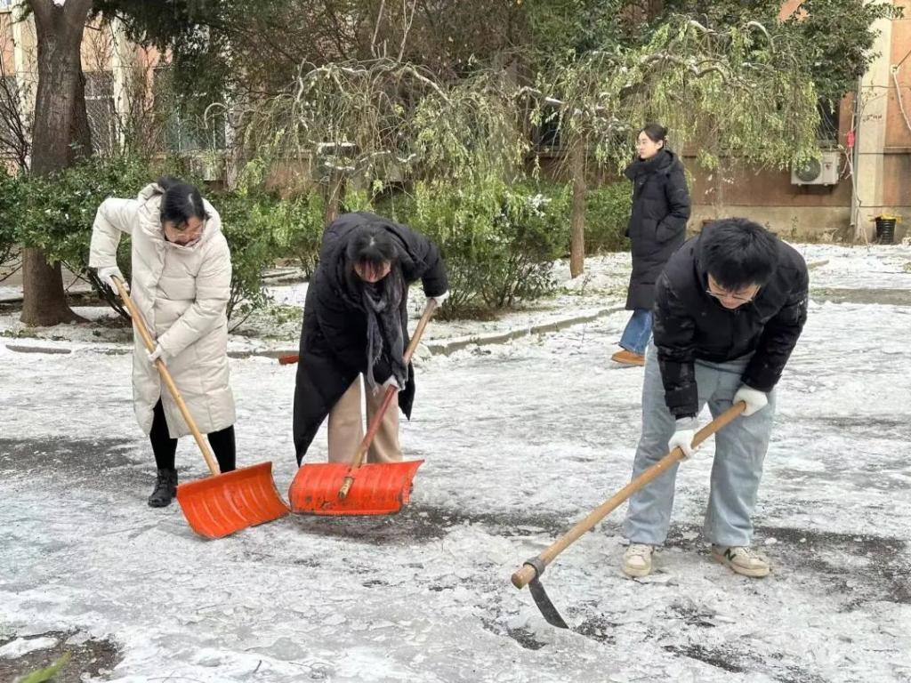 经过三个小时的奋力清扫,历下校区教学楼前、外卖柜处等区域的积雪积冰得到了大范围的改善,路过的学生纷纷投来赞许的目光。