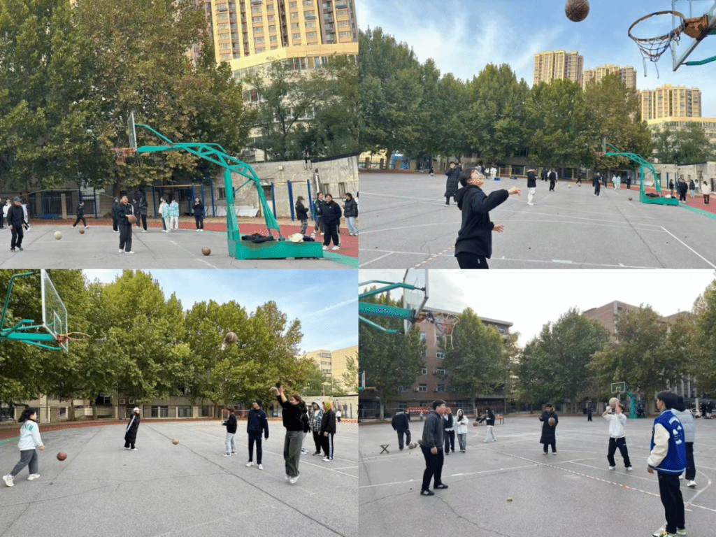 “稳”“准”“狠”是投篮的代名词。女同学们英姿飒爽,男同学们意气风发,同学们轮流在球框下投球,展现激情与动力的联合!在球框下挥洒的汗水成为自己投中篮筐的证明!让我们一起来迎接挑战,创造新纪录!
