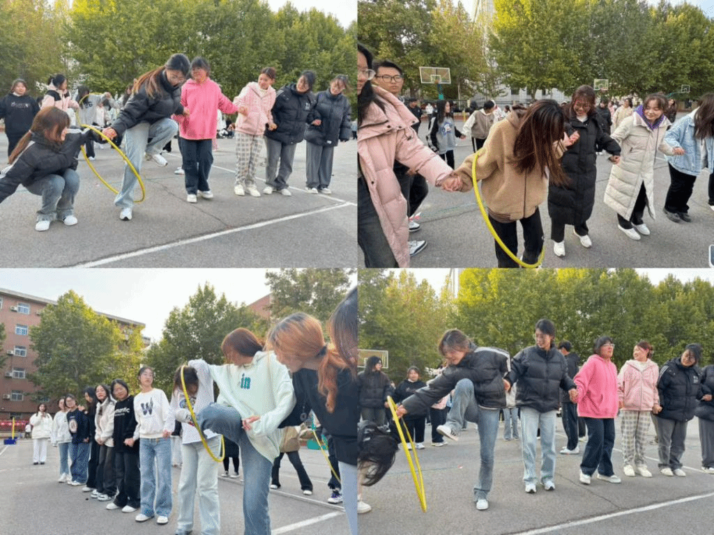 手牵手在规定时间内穿过呼啦圈,生活要跳出舒适圈,运动要逃出呼啦圈!逃出呼啦圈不仅仅靠自己身体的灵活性更要团队的努力!到底是谁最灵活?快来试一试吧!
