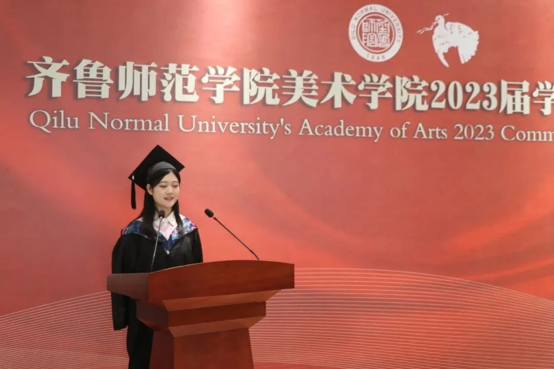 毕业生代表赵雪回望大学四年的青葱时光,回顾刚入校时对自身的期许与期待,她代表全体毕业生感谢母校、感谢学院、感谢老师与父母。她表示,毕业并不代表结束,而是欢呼的开始,不是庆祝完成,而是宣布进步,未来,毕业生们的每一次迈步都将更接近要抵达的终点,成功定会在前进过程中的某一步出现。