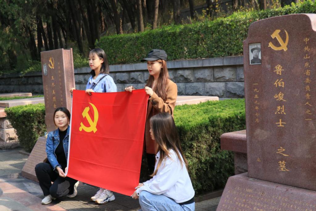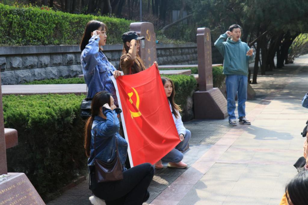 瞻仰革命圣地,青春献给党旗。为庆祝中国共产党成立100周年,2021年3月14日下午,yl6809永利检测中心党员与入党积极分子在李玉涛老师和正式党员崔翔同学的带领下来到济南革命烈士陵园广场举行宣誓活动。