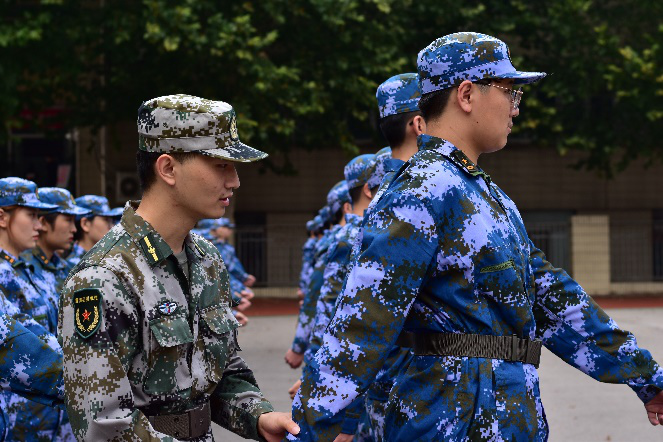 下午恢复室外训练进行齐步排面练习,党总支书记刘增军、党总支副书记胡颖杰、团总支书记梅茹、辅导员李永、牟婷箐老师莅临操场,对军训工作进行指导并给予新生们鼓励与肯定。