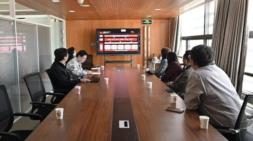 抵达企业后,企业方对学院到访表示热烈欢迎,通过PPT演示,系统展示了集团的发展布局与技术积淀。并结合该公司实际项目案例,生动呈现了该公司在VR、AR内容开发、AI技术和数字化媒体运营等领域的丰富的项目案例与技术储备。