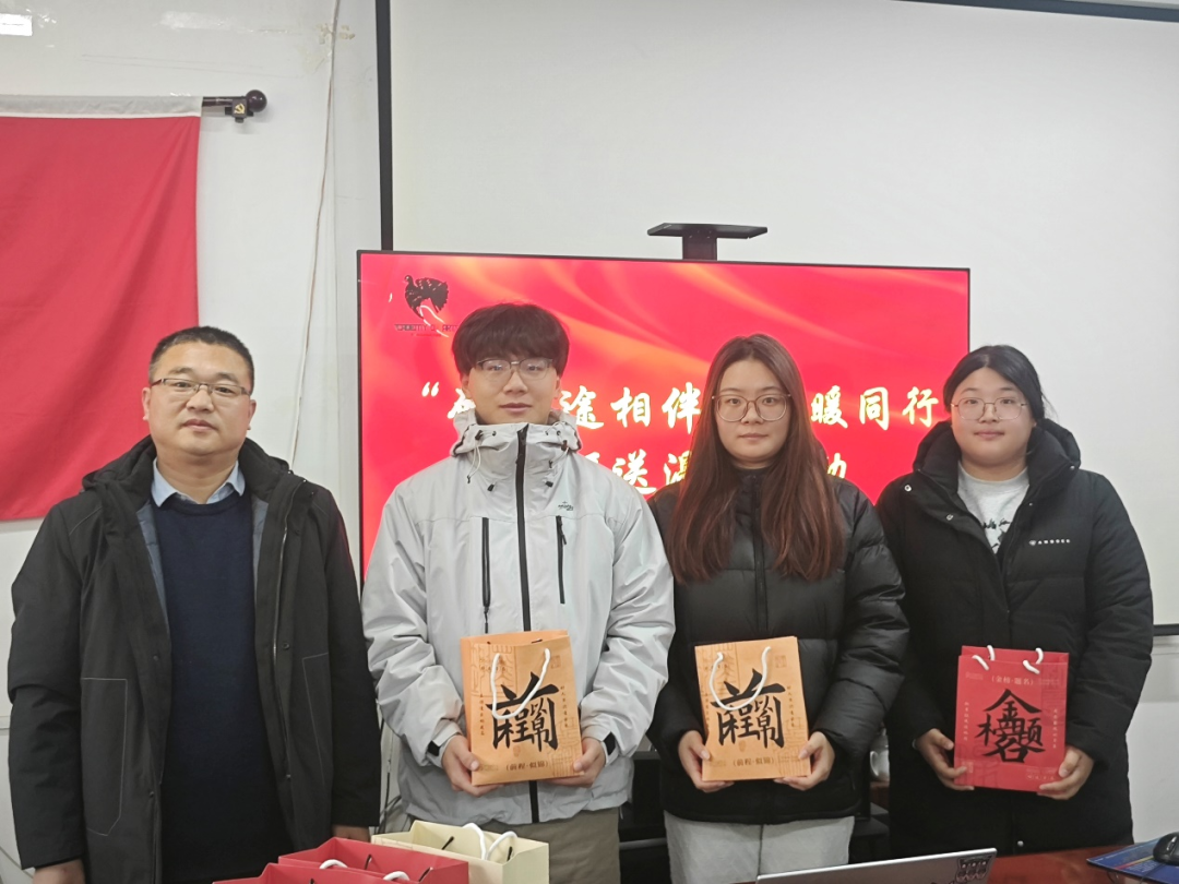 李玉涛为同学们颁发暖心小礼品