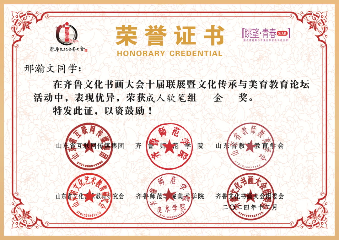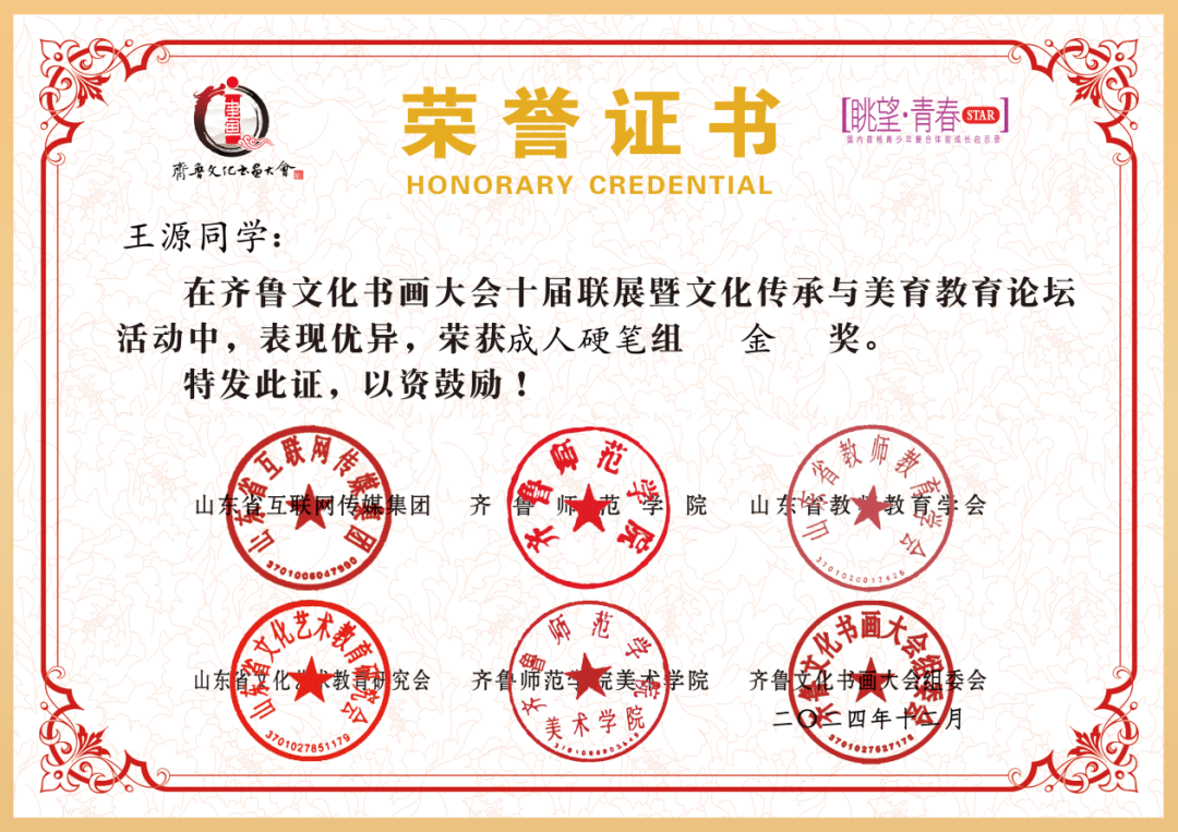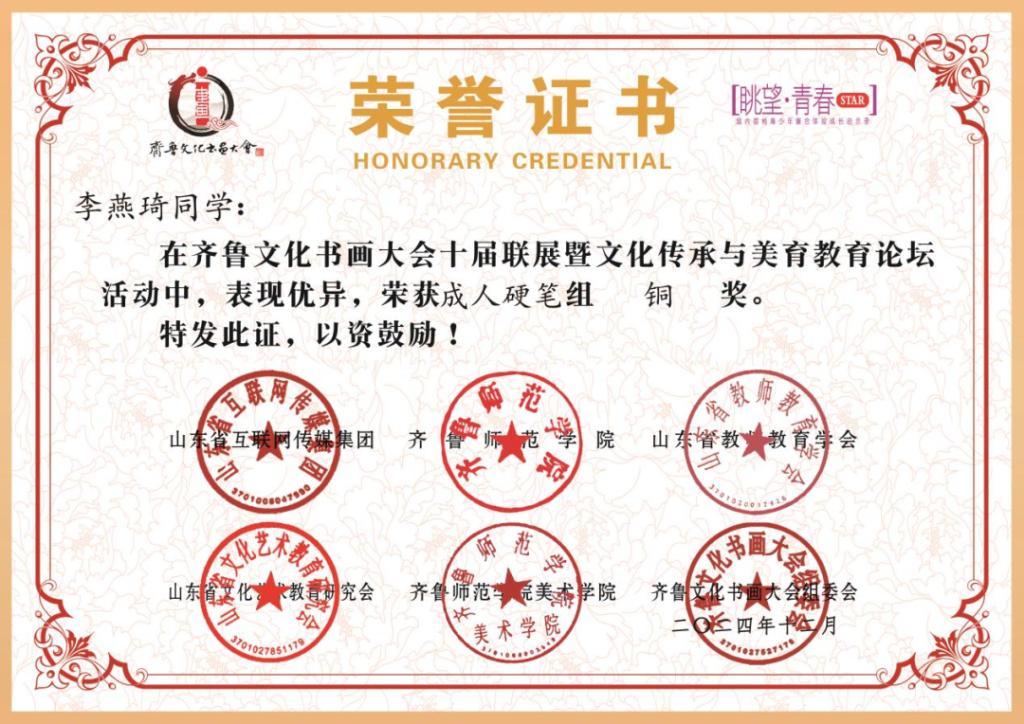 本次书画大会聚焦于乡村振兴、黄河发展这一主题。自大会公告发布以来,yl6809永利检测中心同学踊跃参与。选手书法作品篆隶楷行草各展风姿,经过评审组专家反复探讨,yl6809永利检测中心参赛选手在本次齐鲁文化书画大会中脱颖而出,以下是获奖名单。