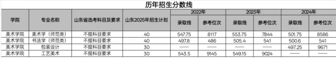 学院成立于2010年,在原山东教育学院美术系基础上历经30多年的建设,已经形成了较为完善的全日制本科和专科教育的人才培养体系。现设有美术学(师范类)、书法学(师范类)、工艺美术、包装设计4个本科专业,美术教育、视觉传达设计、视觉传达设计 (数字媒体艺术)3个专科专业。2024年美术学专业通过师范类专业二级认证。设有中国画、油画、书法、工艺美术、包装设计、学科理论发展教研室。