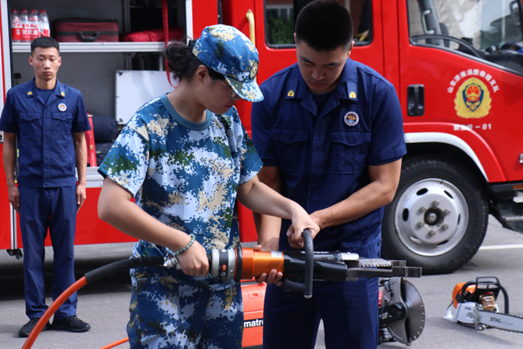 济南历下消防救援大队在教育宣传活动中,阐述校园消防安全的重要性,引导同学们在面对校园火灾时要冷静和沉着,用所学到的消防知识去灭火和保护自身生命安全。并向同学们展示消防救援装备和功能,通过学生亲自操作的方式,感受消防器材的防护和灭火功能,提高同学们消除消防隐患的能力。