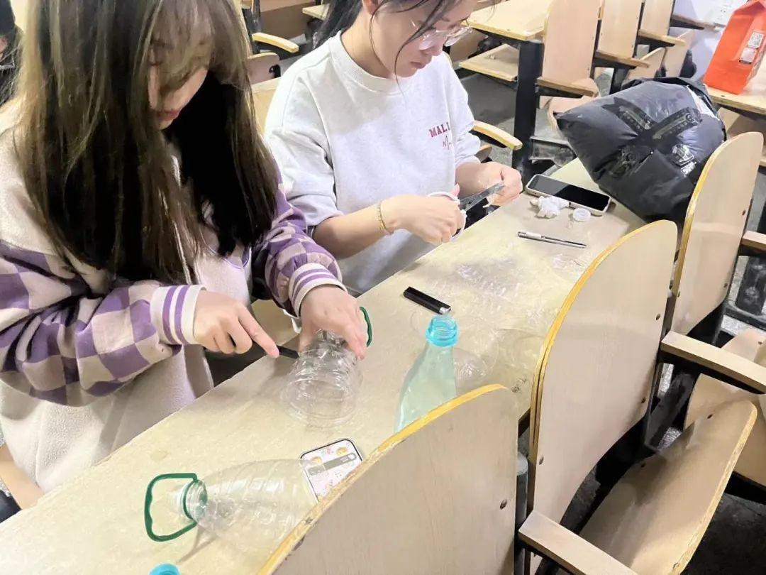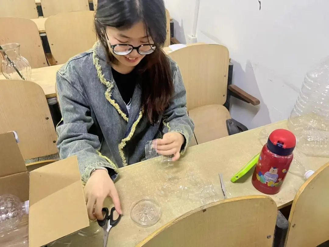 同学们利用废弃的塑料瓶和热溶胶等工具制作手工花。在制作的过程中,同学们认真仔细的按照步骤一步步操作,一朵朵精美绝伦的手工花陆续诞生。同学们围在一起,欣赏着彼此的作品,讨论着各自的创意和心得,每一朵花都散发着春天的气息和美好的祝福。
