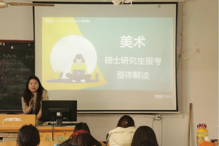 李玉荧以“考研基本常识”为主题,从历年毕业生人数及考研报考人数入手,结合“美术类专业考研形式”“通识类型的备考书目”“院校选择”等方面,向同学们系统讲解了艺术学国家线与专业院校复试线的区分、学硕与专硕的区别,分析选择院校时需考虑的因素,并结合自身求学经历,为同学们深入浅出得说明考取研究生的重要性,擦明了本科生与研究生之间朦胧的一扇窗,让考研这个“题目”变得不再模糊。