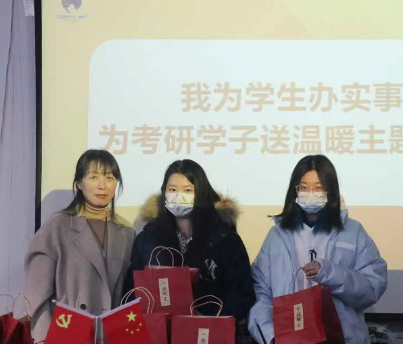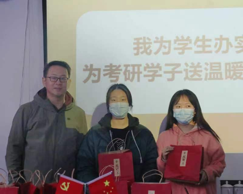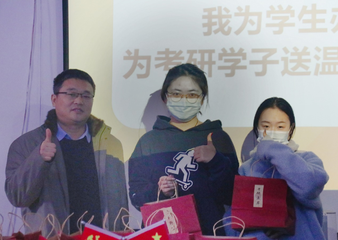 各班学生代表与老师们合照,带着学校的暖心小礼品,镜头定格在那一刻。欢声笑语中,是老师们说不完的鼓励和挂念,是学生们道不清的青春的酸甜苦辣,是对一“研”为定的向往和追求。