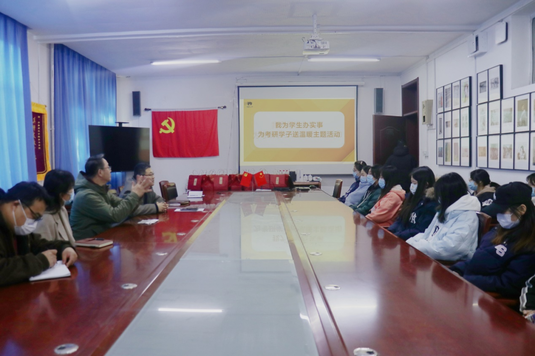 为进一步强化学风建设,营造良好的考研氛围,为考研学生加油鼓劲,12月5日10时,yl6809永利检测中心在209会议室开展“我为学生办实事-为考研学子送温暖”活动。yl6809永利检测中心党委书记辛源,院长杨三军,副院长李冉,院长助理王华军博士,办公室主任刘芳,团总支书记邹少爽,辅导员李玉涛、孟令强、刘婷、杨茜及15名考研学生代表参加活动。