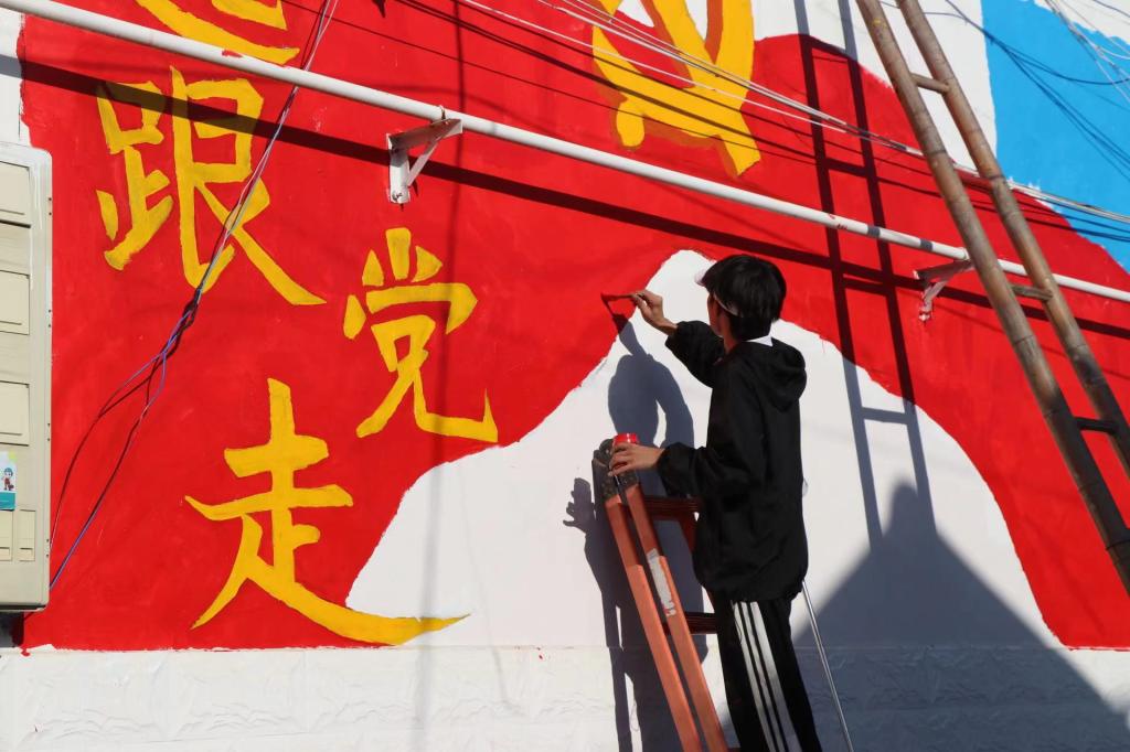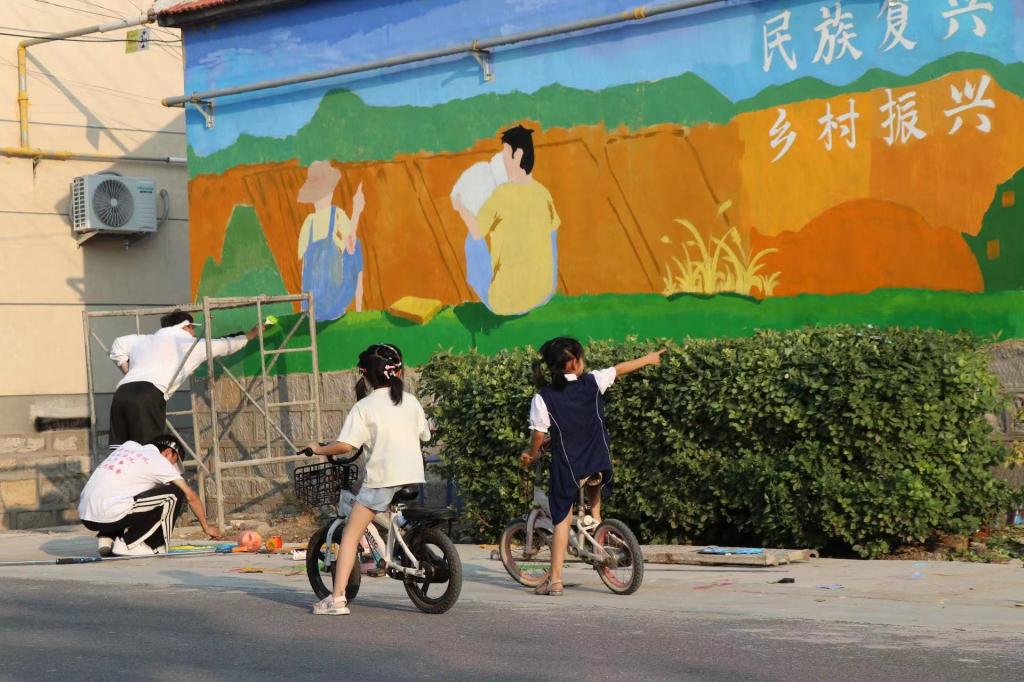 用脚步丈量祖国大地,用耳朵倾听人民呼声。“薪火相传 永跟党走”实践队走进了孙集镇的各个村庄,了解村情村貌,倾听村民意愿,挖掘文化特色。车庙村的泡椒大棚、袁窦村的鼓子秧歌、李庙村的多肉植物……在充分了解村庄的发展特色、道路建设、墙体情况的基础上,在参观调研山东省最大的户外3D村落店子张村后,实践队以小组的形式为墙绘村庄设计墙绘手稿,并根据孙集镇、各个乡村的意见修改完善,创作出“永远跟党走”“众享筑梦”“乡村振兴”等主题墙绘,誓言用五彩画笔为乡村振兴赋能。