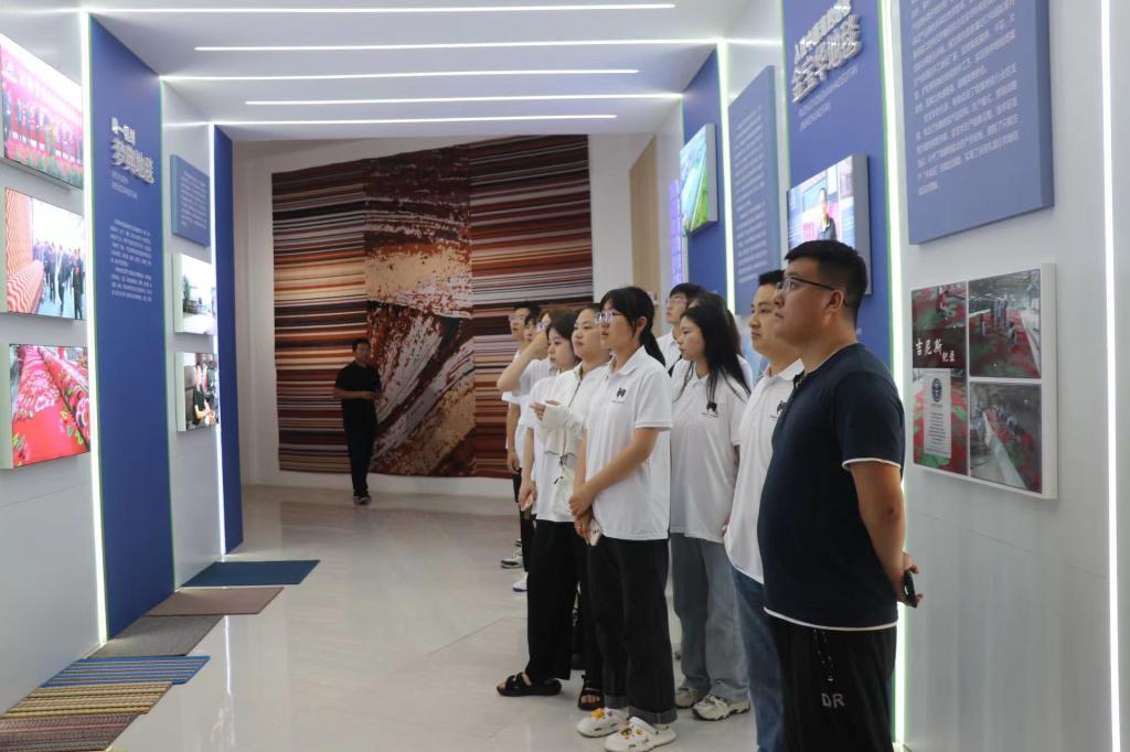 以人为本、薪火相传、弦歌不辍。伴随着淅淅沥沥的小雨,实践队来到了孙集镇地毯展馆参观非遗技艺。讲解员带领实践队队员们感受“地毯之乡”的发展历程,体会手工、机织地毯工艺,为非遗传承注入生生不息的青春力量。“一村一部人文史,千屋千张民俗图。”实践队走入南大刘村村史馆,感受乡村振兴的生动图景、几代人的乡愁之情和真情实感的民声民意。围绕“历史文化”“环境位置”“家风家训”“留住乡愁”等部分,实践队队员们看到了600年来南大刘村人民的生活变迁,凝聚起了服务乡村振兴战略的磅礴力量。