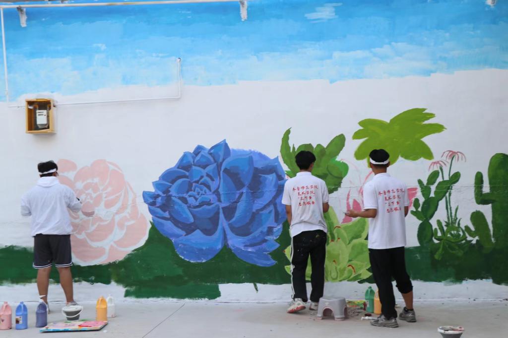 晨兴调底色,带月执笔归”。实践队迎着清晨的第一缕阳光,以画笔为工具,以白墙为画卷,在孙集镇开展主题墙绘工作。起型、调色、落笔、上色,画笔在光影间跳跃,将绿水青山、党建引领、文化艺术绘入乡间,“产业兴旺、生态宜居、乡风文明、治理有效、生活富裕”的美好愿景跃然墙上。尽管烈日当空,但实践队队员们认真对待每一次下笔的机会,手中的画笔从未停歇,在白墙黑瓦上留下了青春的印记,引来村民的围观称赞。“快看,大学生来咱们村画画了,画的特别好看,这么大太阳,他们也没法休息。”“哥哥姐姐,我以后也想学画画。”路过的行人纷纷说道。