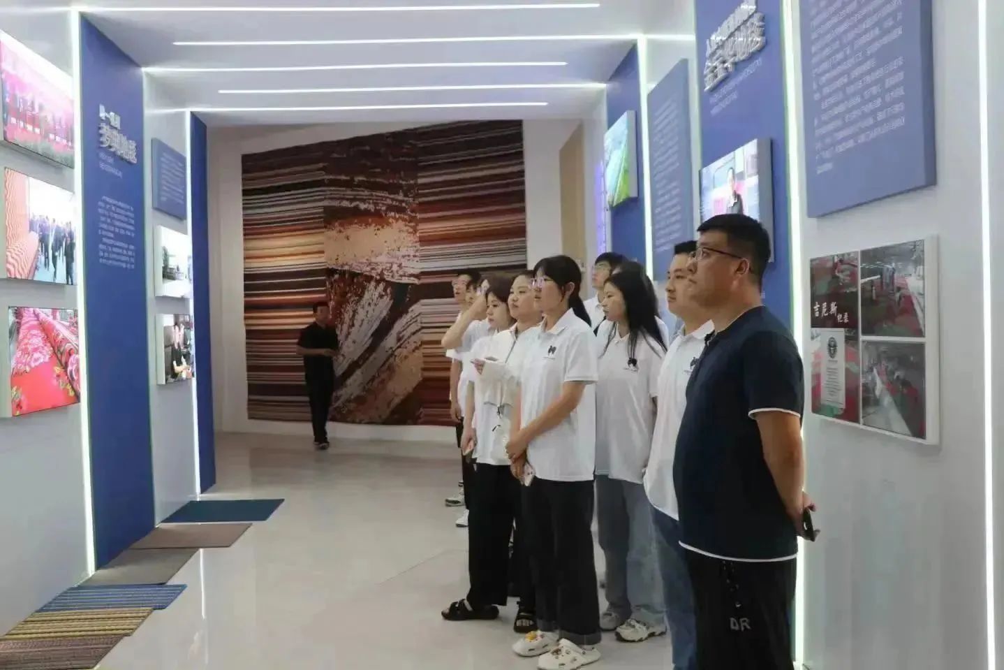 无畏困难,负重前行。同学们纷纷表示,参观孙集镇地毯产业展馆为他们带来了很大的启发和教育,作为新时代青年,要依靠中华优秀传统文化和生活中的经验来进行创新发展,用自身所学加强和巩固乡村振兴发展,书写无愧于时代和青春的华彩乐章。