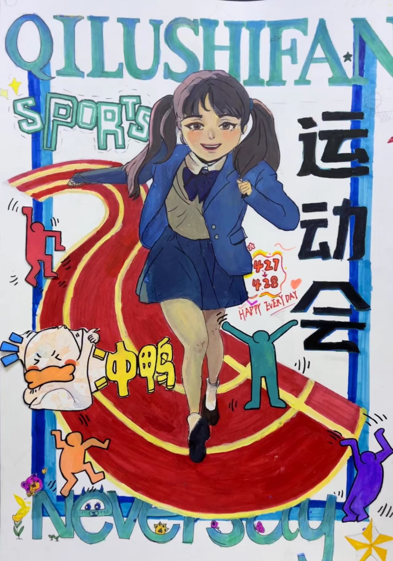 运动会海报征集活动不仅为同学们提供展示自我创意的平台,而且让同学们在创造过程中深层次地领会“自信、勇敢、竞争、合作”的体育精神,体会奋斗拼搏的时代精神。