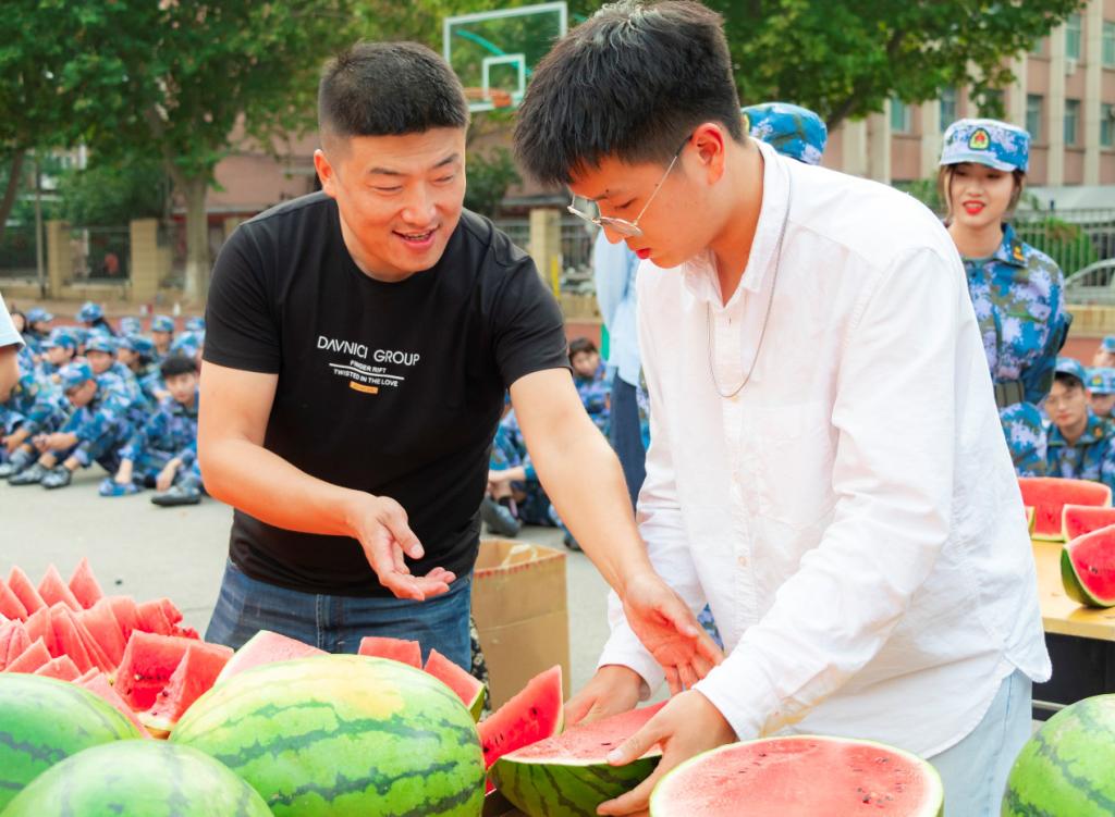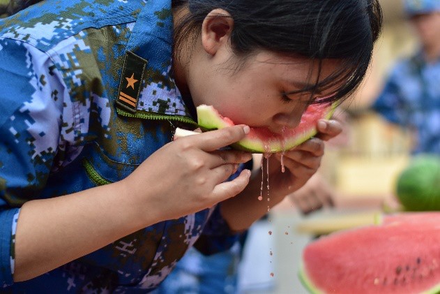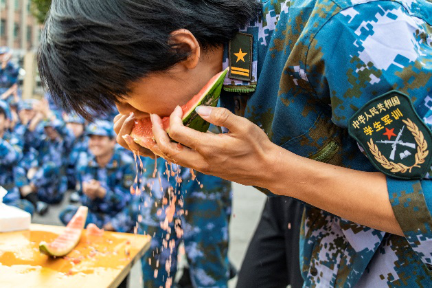 在党总支副书记胡颖杰、辅导员李永、牟婷箐老师的指导下,新生们于午后进行吃西瓜大赛的活动,人人争先、气氛火热,不仅拉进学院领导、老师、教官与新同学们之间的距离,也达到了劳逸结合的目的。晚训时间教官组织观看《这就是中国》第三集,张维为教授讲到关于读懂中国,需要有一种实事求是的精神和方法,需要超前地研究一些问题,并探讨中国现在发展的阶段与指标体系的改进,提出要了解发展中国家、非洲、拉美、西方,准确地把握,才能形成一种真正的定力。