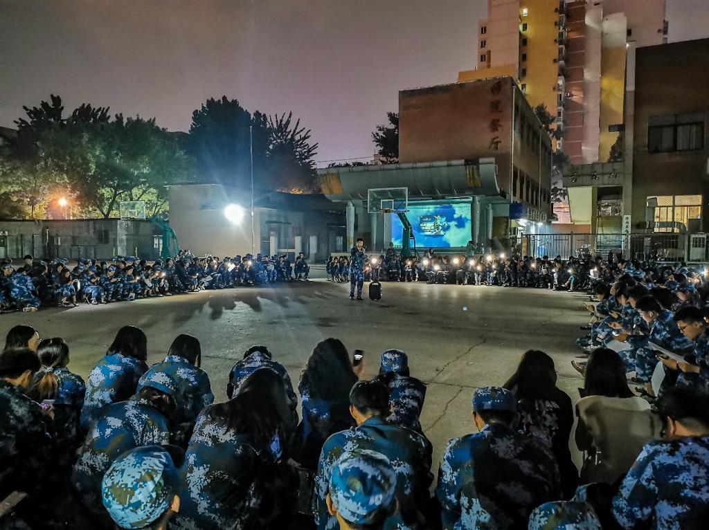 晚训时间新生们观看《这就是中国》第四集,中国实现了人类历史上罕见的一个超大规模国家的和平崛起,是一个非同寻常的奇迹。中国在崛起的过程中没有对外发动侵略战争、没有掠夺别人,而是依靠自己的勤劳、智慧、勇气,甚至是牺牲。最后的才艺展示环节将气氛拉至最高潮,在音乐声中消除一日疲惫,以最好的身体与精神状态迎接明日。