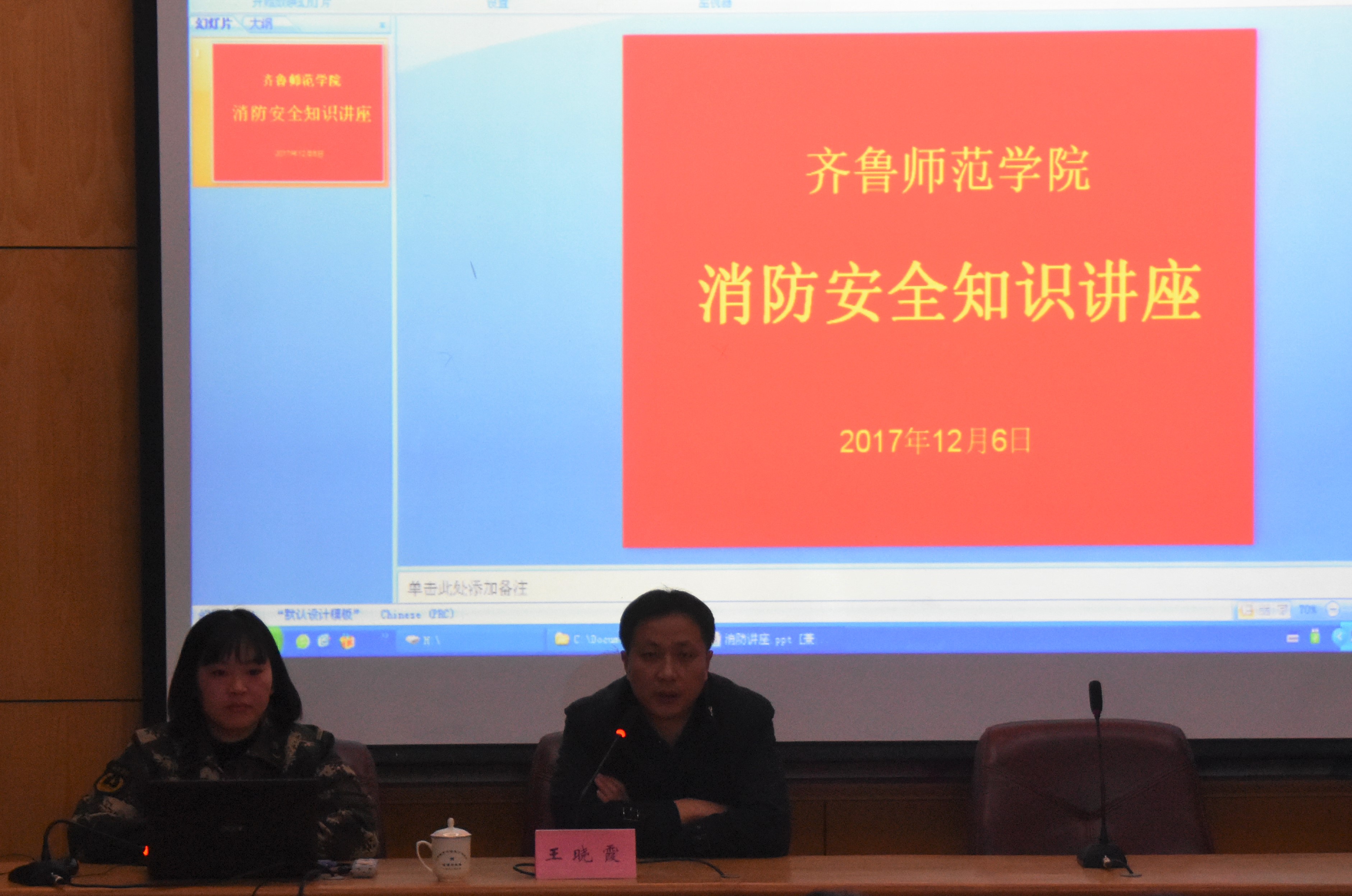 讲座伊始,历下区消防大队王警官播放了火灾视频,然后具体地举例给同学们认真讲解有关消防安全知识及遇到消防灾难自救方法。提高自我保护意识,呼吁我校同学共同携手,从平常的学习生活细节入手,注意消防安全,防止消防事故的发生,为保护自己和他人的平安幸福而共同努力。