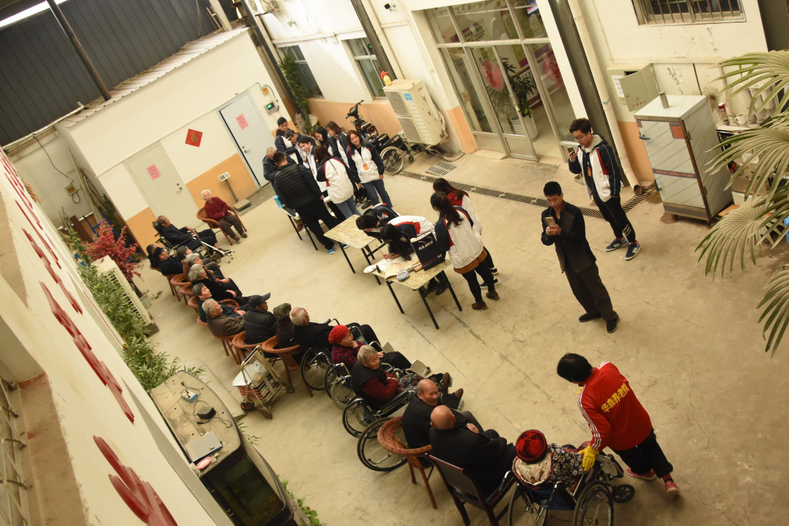 开始由社团联合部的同学带来精彩的开场白,并与老人们进行互动,主要让老人们感受到我们的热情,陪他们聊天说笑,也希望老人们身体健康笑口常开。