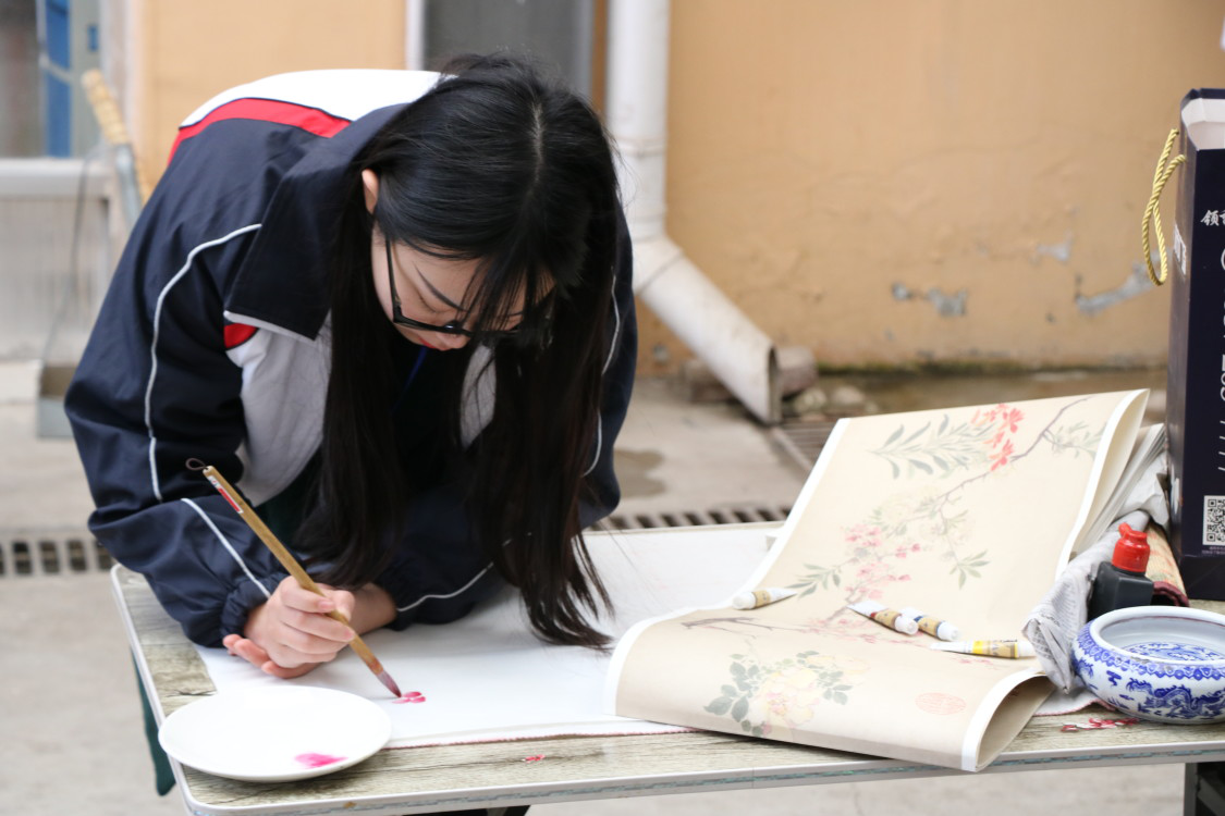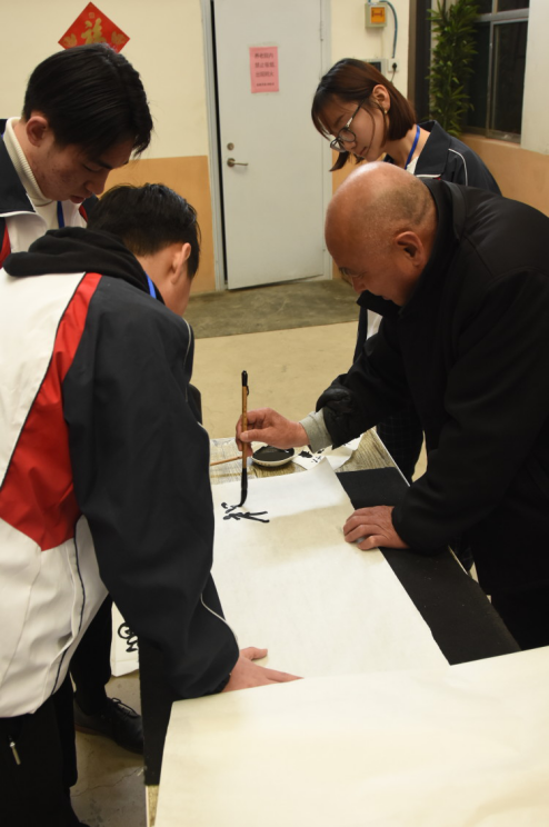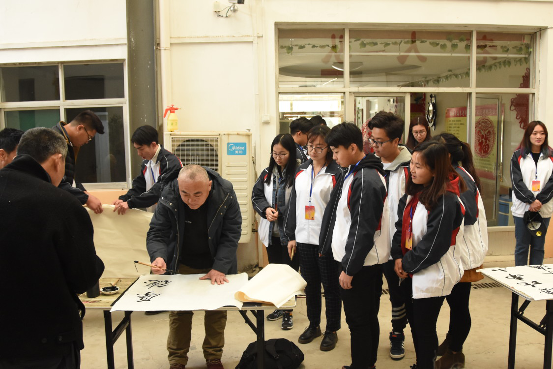 接下来是书法专业的同学们为爷爷奶奶们带来的书画才艺展示,同学们让毛笔在手中起舞,充分展现了我校yl6809永利检测中心浓厚的艺术气息。爷爷们也参加了进来,和同学一起融入开心的活动中。