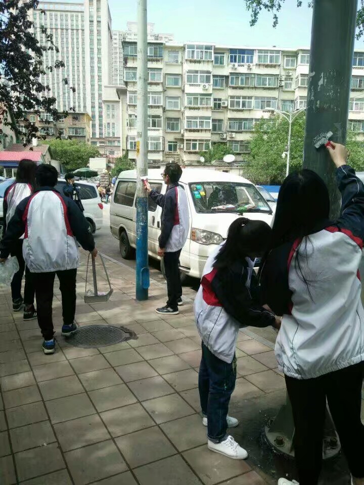 志愿者们积极的行动起来,街边的垃圾,小广告通通消灭!!