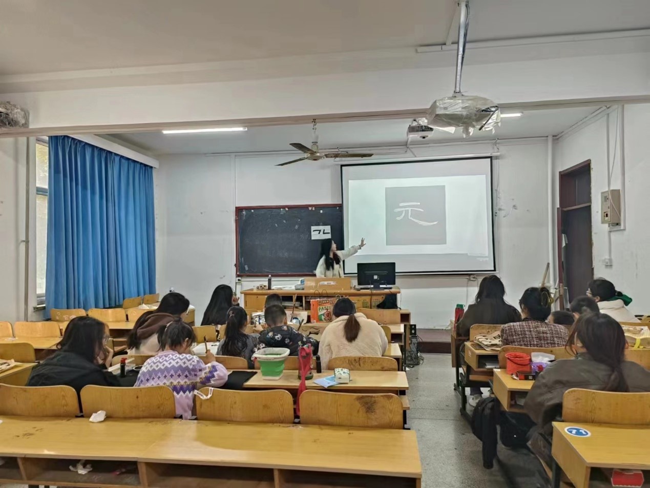 在隶书基本笔画的授课过程中,主讲老师带着同学们一起回忆毛笔执笔方式,为同学们耐心讲解笔画的写法及分类。课堂上同学们积极与老师互动,勇于展示,在宣纸上写出了对笔画的独特见解,在欢乐的课堂氛围下一起完成了本次学习活动。同学们在隶书基本笔画的学习中不仅是愉悦身心、陶冶情操,而且了解到中国书法演变的灿烂历史文化,培养了正确的人生观,提升了审美素质,提高了观察力,让同学们更加去热爱美好的生活。
