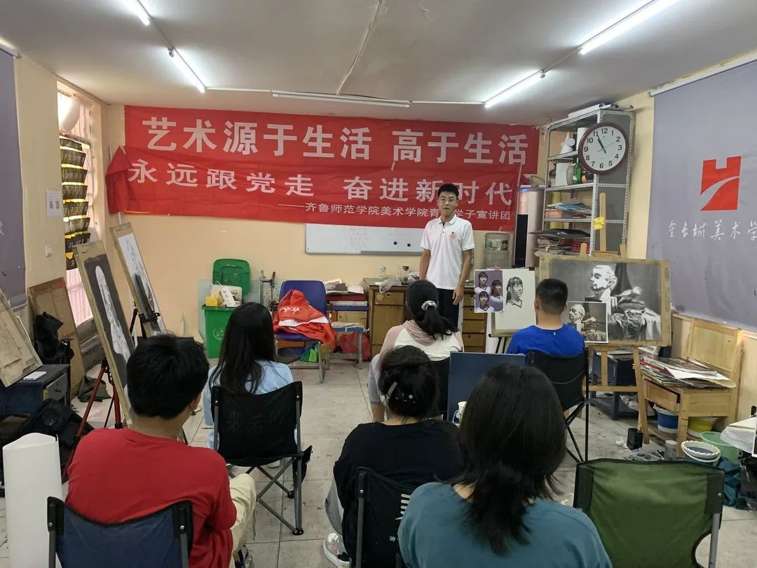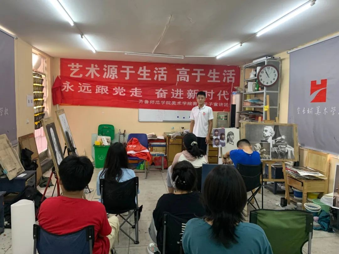 7月20日返乡后,我来到滕州市游于艺美术培训学校,为青年学子们讲述历史,传递红色精神。当他们听到蔡公时烈士在这里勇敢的面 对 日 寇 屠 刀 , 慷 慨 赴 死 时 眼 里 都 充 满 了 钦 佩 。