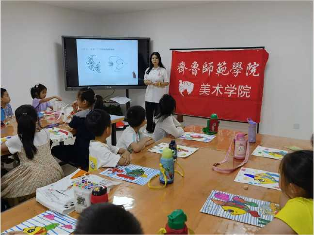 返回家乡后我走进济南市青少年宫,面向一二年级美术班的学生进 行宣讲。我向他们介绍了蔡公时的生平事迹,宣扬了优秀老党员的红 色革命精神。并且介绍了共青团,鼓励他们积极向党团组织靠拢。当 我看到一个个扬起的小脸,聚精会神的听着党史,看到我们佩戴的团 徽时充满期待的眼神,我的内心十分激动和感动。