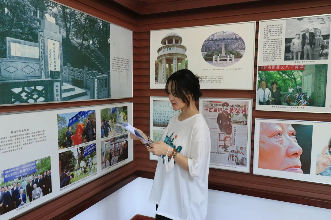 2021年7月13日14日,yl6809永利检测中心的八名青年宣讲团成员在牟婷箐老师的带领下来到了蔡公时纪念馆,进行“学党史、跟党走”志愿宣讲活动。怀着敬畏严肃的心情同学们凝神静思听馆内讲解老师介绍这位革命先烈用鲜血染成的红色基因精神,了解“五三惨案”日军惨绝人寰的罪行与蔡公时烈士的威武不屈精神。