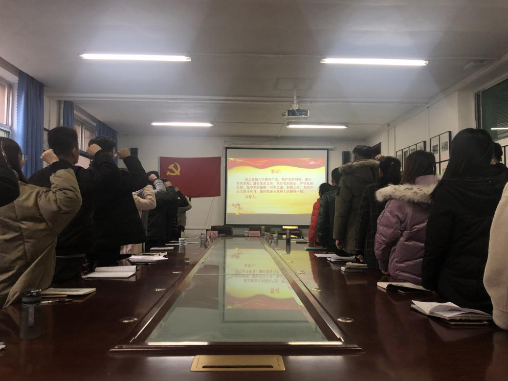 会议伊始,刘政等三名同志依次向支部大会汇报个人在预备党员期间思想、学习和工作等方面的相关情况并提出转正申请。会议严格按照组织流程,由组织委员对每位申请人的培养情况做详细汇报。通过无记名投票表决,支部大会全票通过刘政、张鸿志、杨九成三位同志的转正申请。随后,所有与会人员面对党旗庄严宣誓。