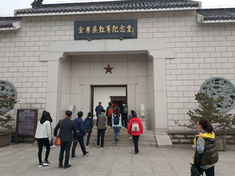 在金寨县革命博物馆,党员教师们观看了馆内陈列的文字、图片和实物等资料。馆内的讲解员为大家做了细致和生情并茂地讲解。馆内陈列以实物为主,突出地方特色,分为序厅,革命历史陈列馆,革命烈士事迹陈列馆和将军厅四个部分。陈烈文物400余件,图片470余幅,绘画,图表50余幅,大型雕塑4座。