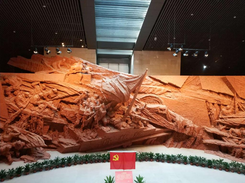 渡江战役纪念馆位于安徽合肥,纪念馆主体建筑面积1.4万平方米,犹如一艘乘风破浪的巨型战舰。渡江战役纪念馆由南向北为五角星胜利塔、总前委群像和纪念馆组成。