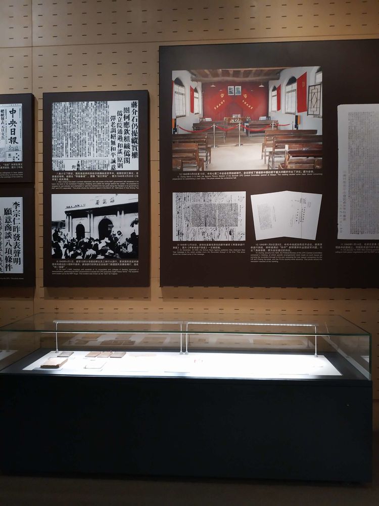 党员教师们怀着崇敬的心情认真观看馆内的图片、实物和音像资料,聆听讲解员解析解放军在渡江战役中英勇作战的情形和对当时战局的分析。