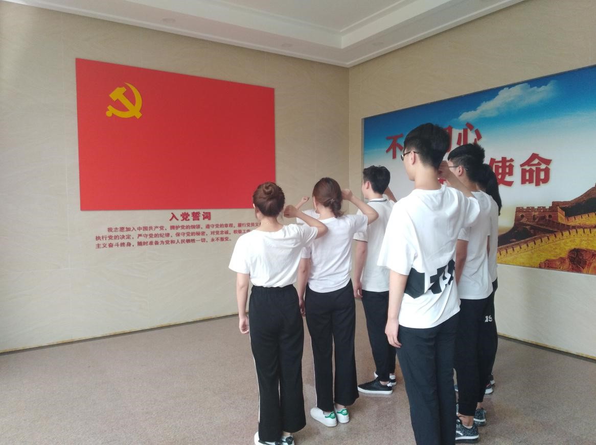 陈列馆参观完毕,学生党员重温入党誓词,进行了庄严的宣誓。