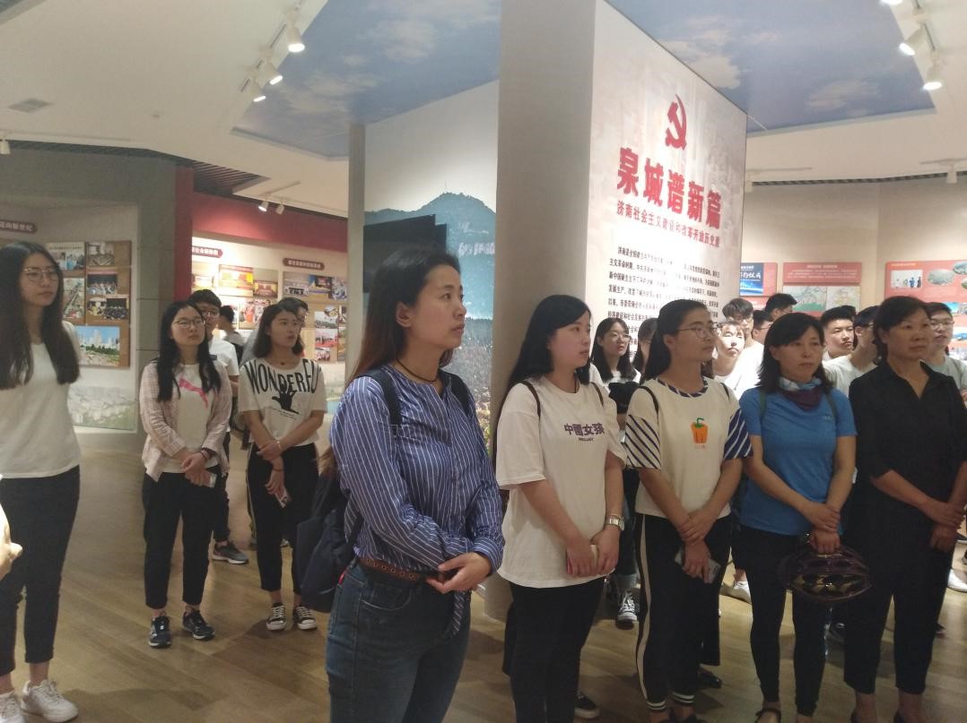为深入推进学习党的十九大精神,了解党的理论知识与历史,提升学生党员的责任感与使命感,坚定入党积极分子的理想信念,我院于5月19日上午组织全体学生党员、预备党员与入党积极分子,由学生党支部书记梅茹和统战纪检委员李玉涛老师带领到中国共产党山东省党史陈列馆进行参观学习。