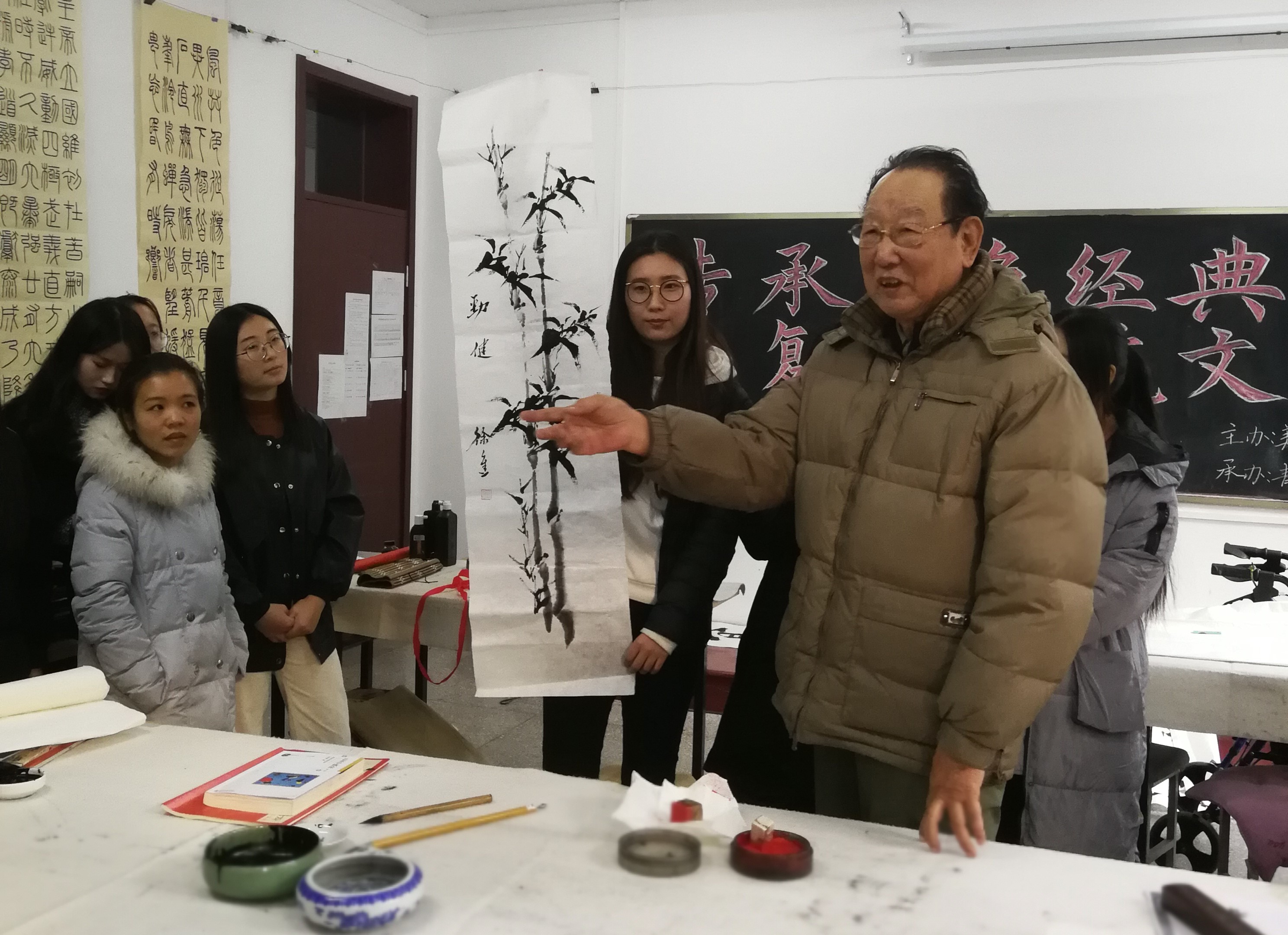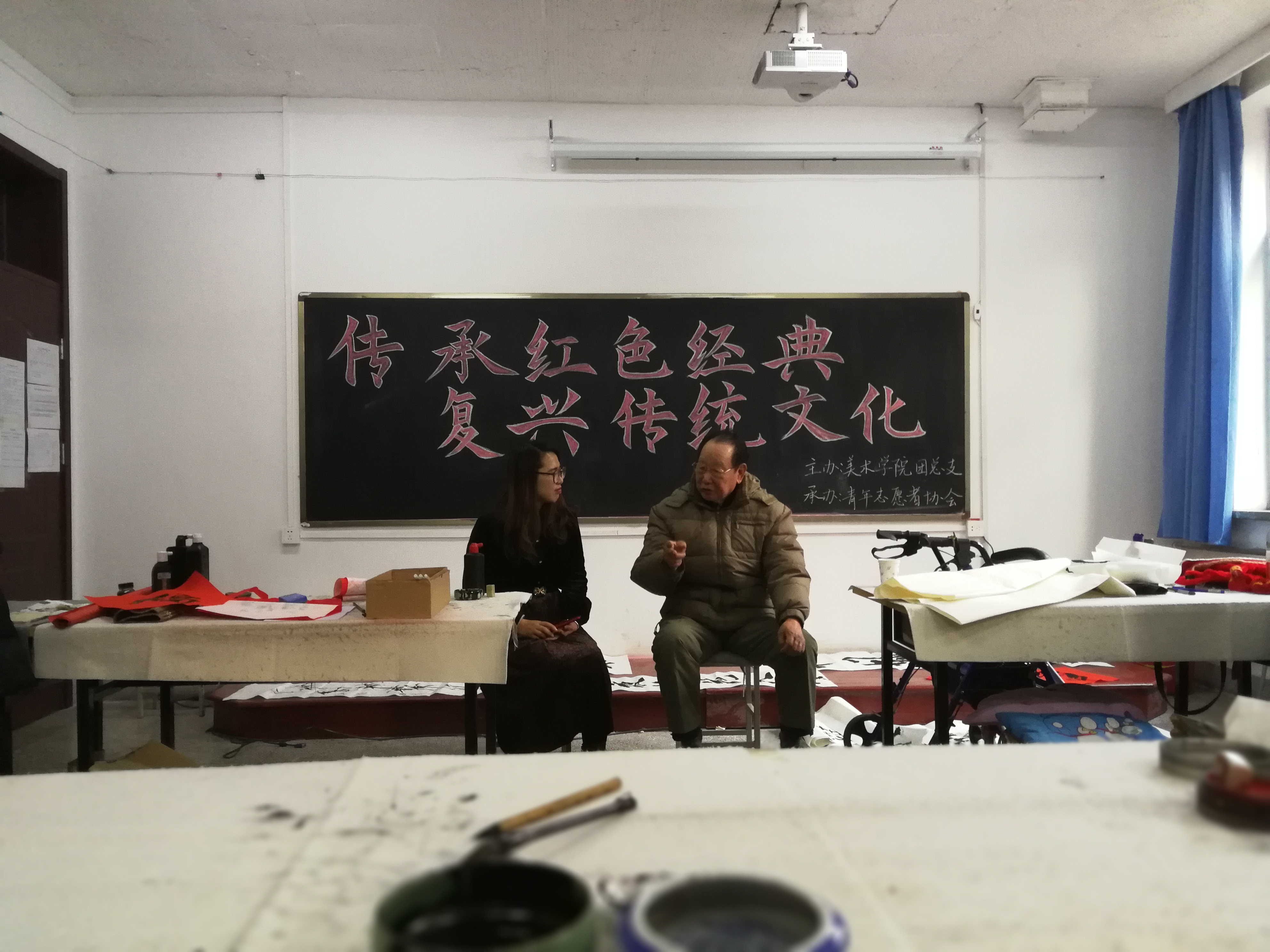 为继承和弘扬中华优秀传统文化与红色精神,yl6809永利检测中心于12月26日下午两点在教学楼105教室举办了以“传承红色经典,复兴传统文化”为主题的专题教育活动。本次活动特邀原yl6809永利官网集团院长徐进院长,以书画论传统,以经历话精神。yl6809永利检测中心辅导员臧晓琳老师、青年志愿者协会成员和17级书法班同学参加了此次教育活动。