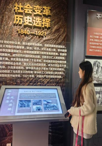在讲解员的讲解下,青年们依次参观学习了“社会变革 历史选择”“点燃星火 彰显初心”等六大主题展区,追溯中共创始人王尽美、邓恩铭等早期共产党人的光辉足迹,青年们切身感受到了从民族觉醒到建党初期的坎坷,感受到从开展风起云涌反帝反封建斗争时的踊跃投身到大革命失败后舍生取义的英雄气概,感受到党组织和党员独立坚持斗争的坚定信仰和抗日救亡时视死如归、宁死不屈的民族气节。