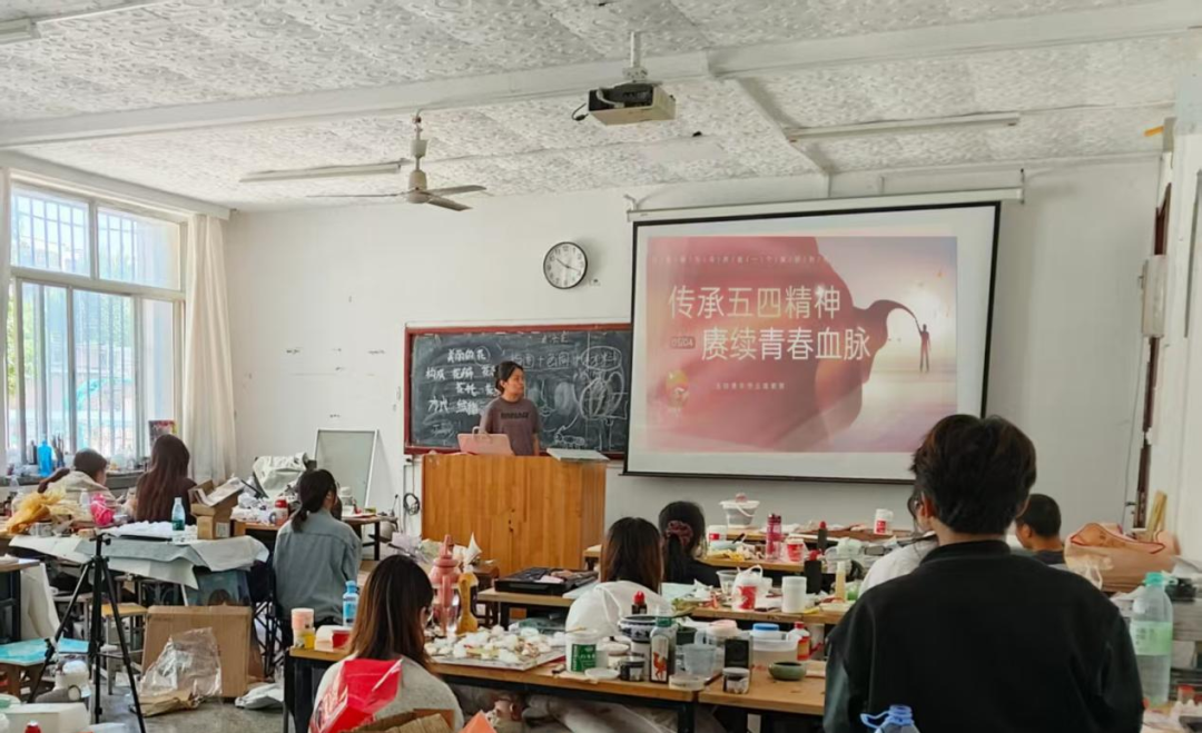 活动伊始,各班同学在团支书的引领下,共同观看五四精神主题纪录片。影片中,青年学子为国家独立、民族觉醒振臂高呼的画面、革命先辈们抛头颅、洒热血的英勇事迹,深深震撼着每一位同学的心灵。