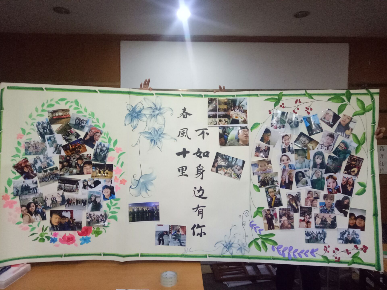 此次活动在院内获得了同学们的热烈响应。活动刚开始,很快照片就被集齐了,这之中的每一张照片都风趣幽默而又不失温馨,让人感受到了满满的班级凝聚力。还有些同学在照片的背面写上了满满的祝福话语,温暖人心。然后我们将同学们青春昂扬的笑脸照片,以展板形式展现出来,并在美院的官方平台——美院服务站上进行了“笑脸”照片的推送和宣传。让美院师生都可以看到这一张张带着春风与笑意的照片。