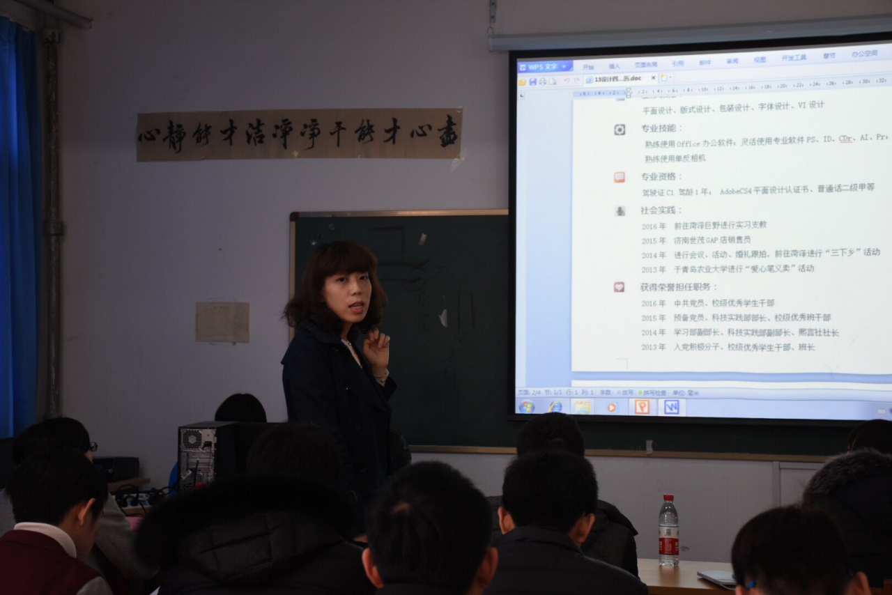各个选手的个人简历风格不同各有千秋,有的封面设计别致,有的设计思路独具匠心,同时现场评委从色调搭配、版面设计、结构内容、现场表达等方面对选手提出指导意见!让现场的同学学到了很多制作简历的技巧,从而取长补短,更好的完善自我。
