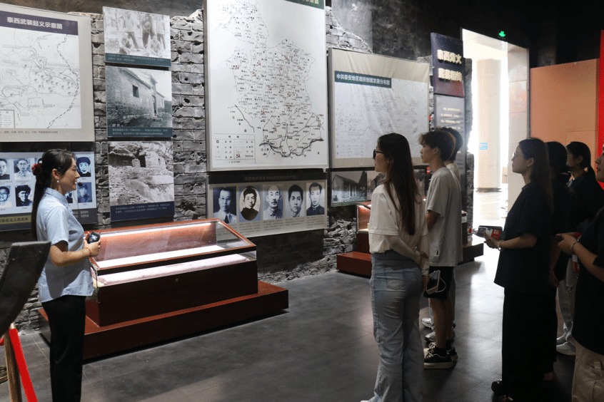跟随讲解员的指引,服务队成员们依次穿越纪念馆六大主题展厅——“抗战烽火风起云涌”“铁流东进建功泰西”“绝地反击胜利突围”“惨绝人寰罪恶滔天”“生死与共血肉情深”“丰碑永铸浩气长存”,了解八路军115师将士以简陋武器依托险峻地形,在陈光、罗荣桓等将领指挥下血战竟日,创造了以少胜多的军事奇迹的故事。