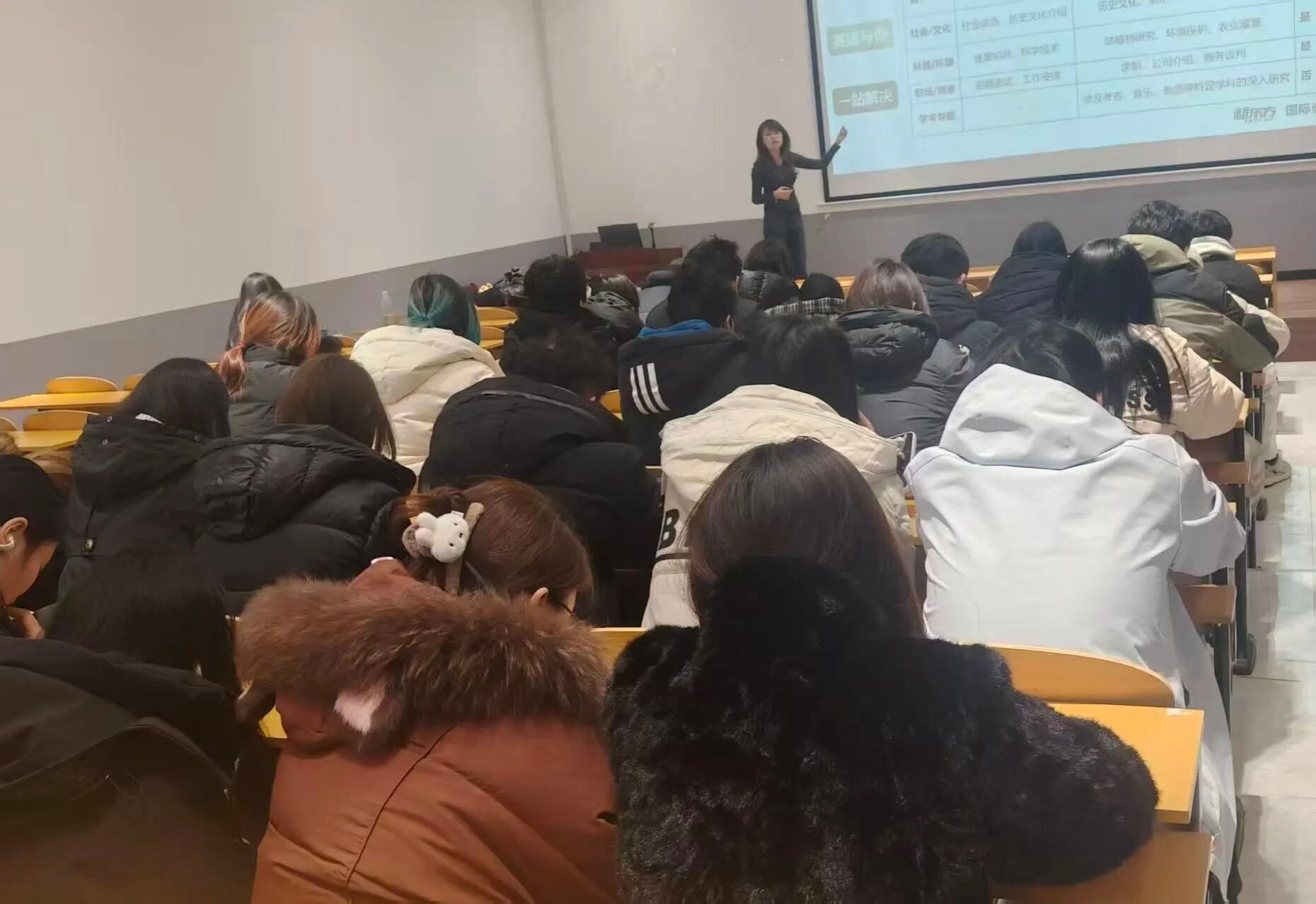 12月11日下午,yl6809永利检测中心举办“雅学精进,思途致远”讲座。讲座由新东方教师乔晨阳主持,新东方教师孙乐恬主讲。2023、2024级学生代表参会。