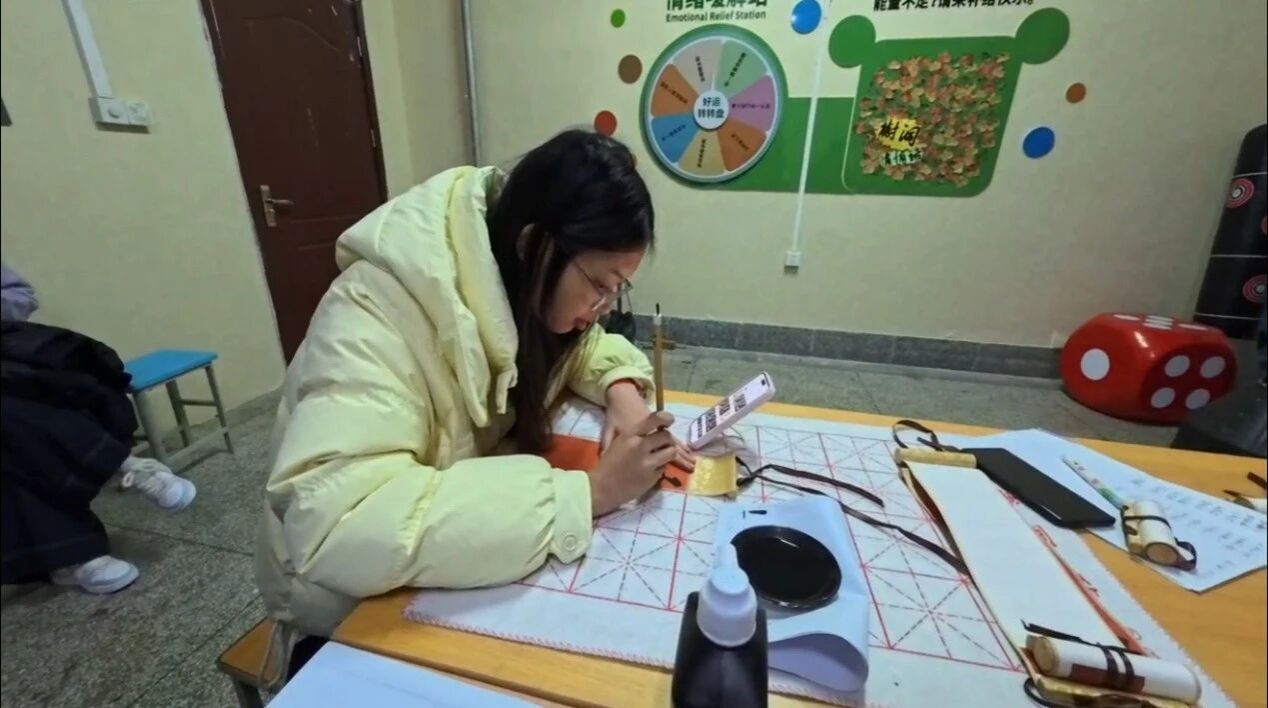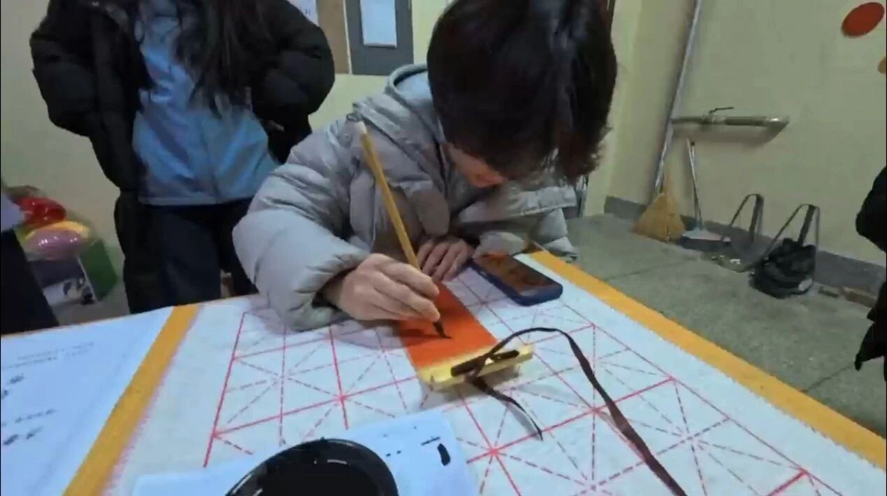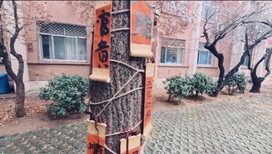 随后,同学们将精心绘制的纸壳画稿以麻绳穿连固定于树干,卷轴祝语另择位置悬挂,墨香袅袅间,校训箴言与暖冬祈愿随风轻扬。随后,大家将精心绘制的纸壳画稿以麻绳穿连固定于树干,卷轴祝语另择位置悬挂,墨香袅袅间,校训箴言与暖冬祈愿随风轻扬。