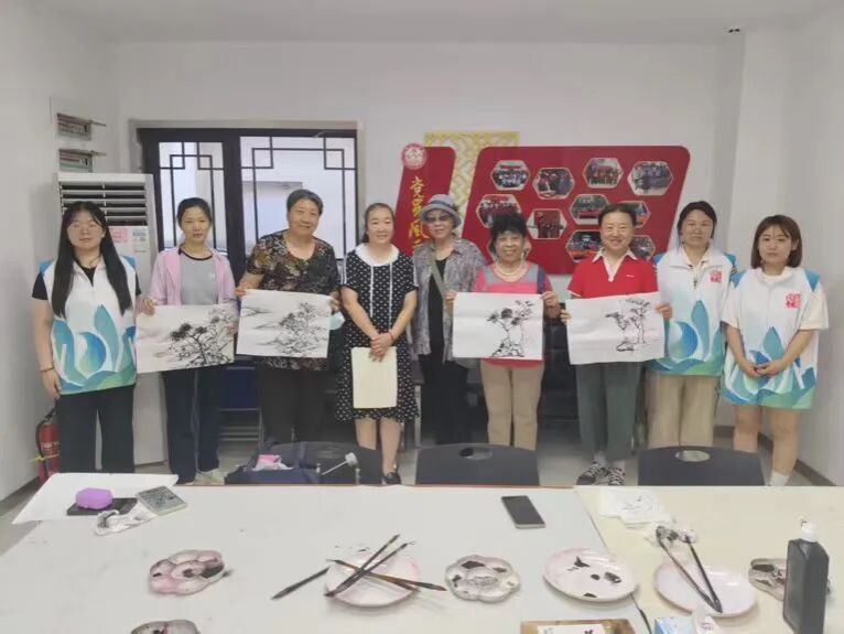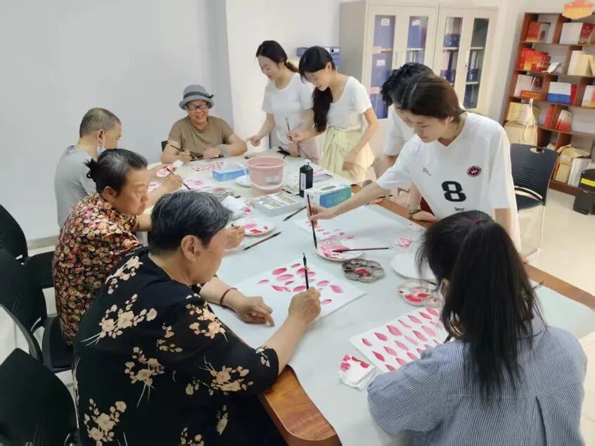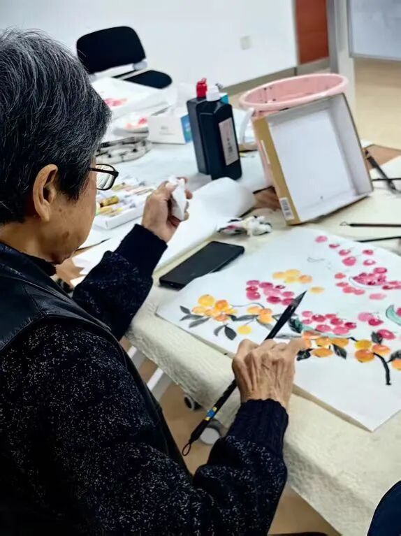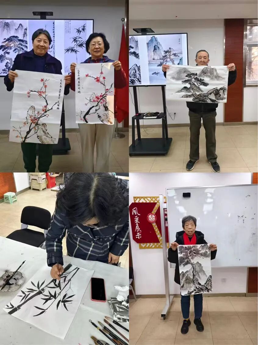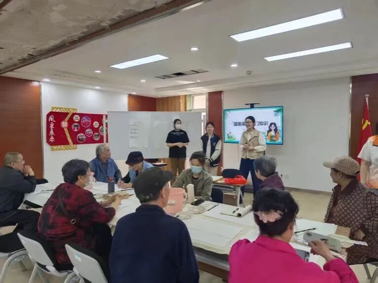 课堂上,老人们从最初的“不敢下笔”到后来的“主动创作”,不仅掌握了国画基础技法,更在笔墨挥洒间感受传统艺术的魅力。课后,大家互相分享作品、交流心得,美育的种子在社区悄然生根。许多老人感慨:“年轻人把课堂搬到家门口,不仅教会我们画画,更让我们的晚年生活多了份雅致与快乐。”