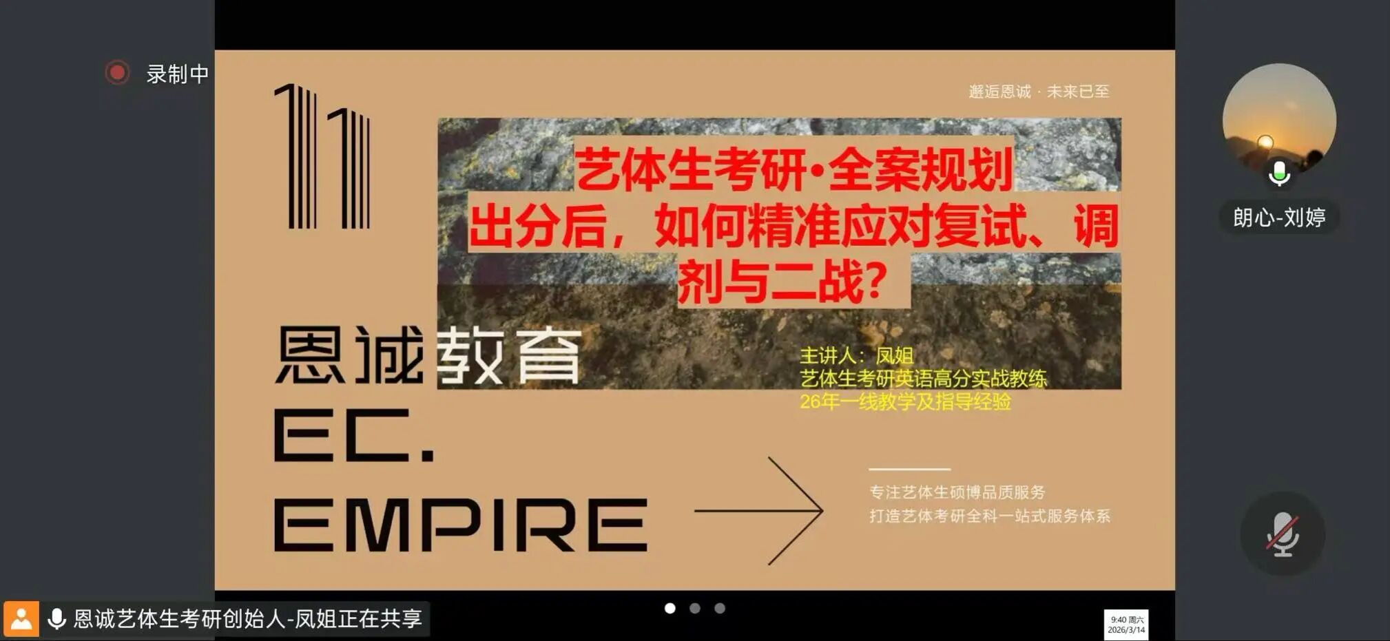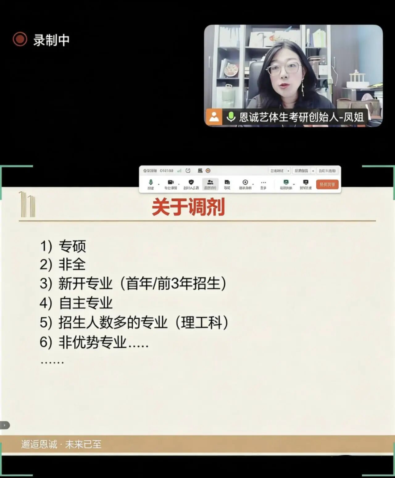 本次分享会中,韩凤紧扣艺体考研的专业特性与考生备考痛点倾囊相授,为考生提供了从复试准备、调剂技巧到后续人生选择的全链条、实战性指导。让每一位考生都能带着实用的备考方法与坚定的备考底气,做出适合自己的发展选择。